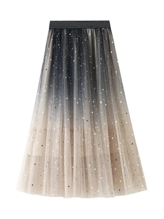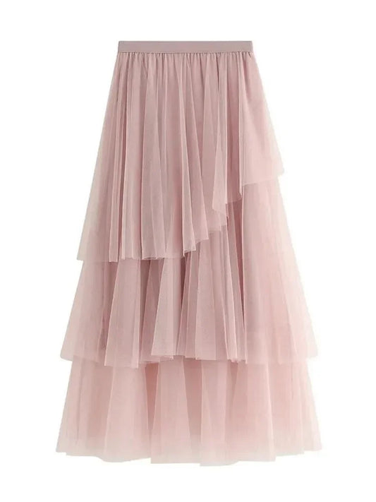 Irregular Mesh High-Waisted Long Skirt