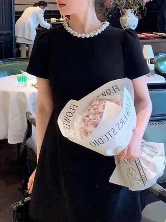 Vintage Studded O-Neck Mini Dress