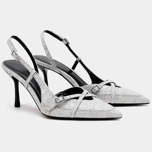 Zapatos de tacón de aguja de piel con hebilla grande para mujer
