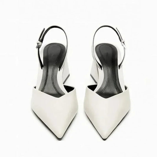 Zapatos de tacón con tiras en T y punta puntiaguda para mujer